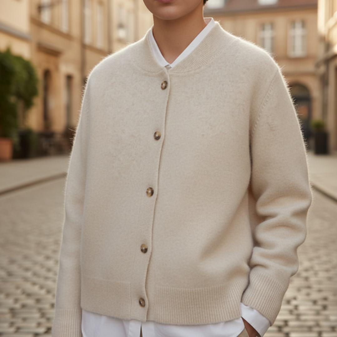 Questo cardigan da donna presenta un design classico a bomber. La silhouette è rilassata e presenta una chiusura frontale con bottoni. È un capo versatile perfetto per vestirsi a strati su una camicia o una maglietta. I polsini e l'orlo sono a coste per una vestibilità confortevole. Il cardigan è disponibile in diverse tonalità neutre e classiche.