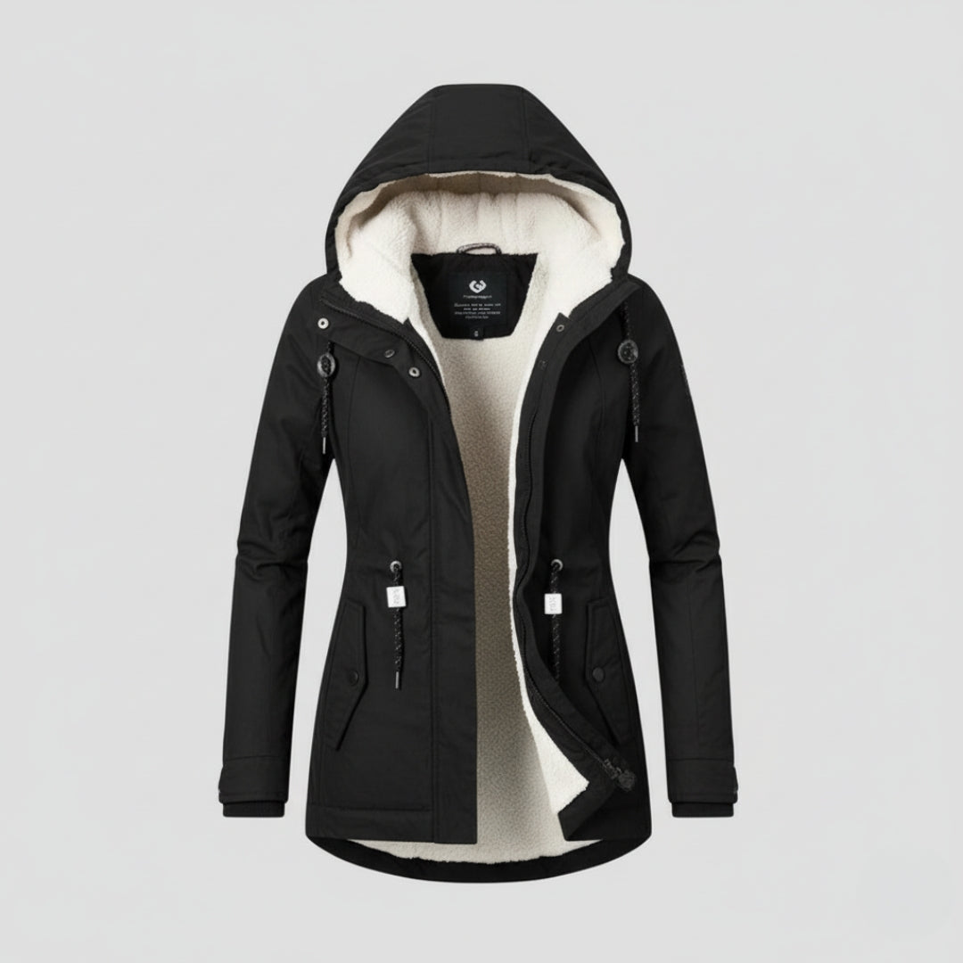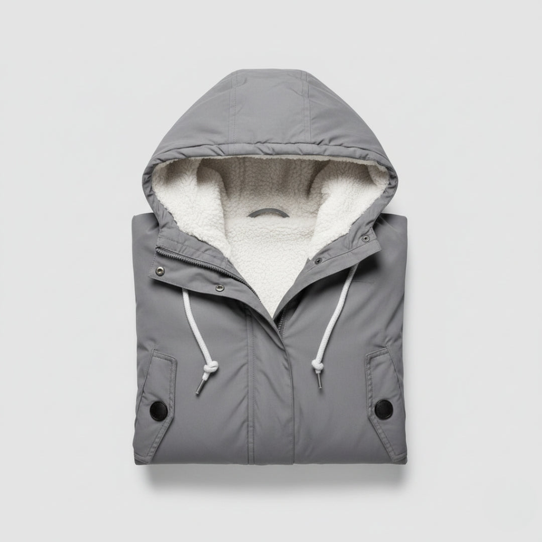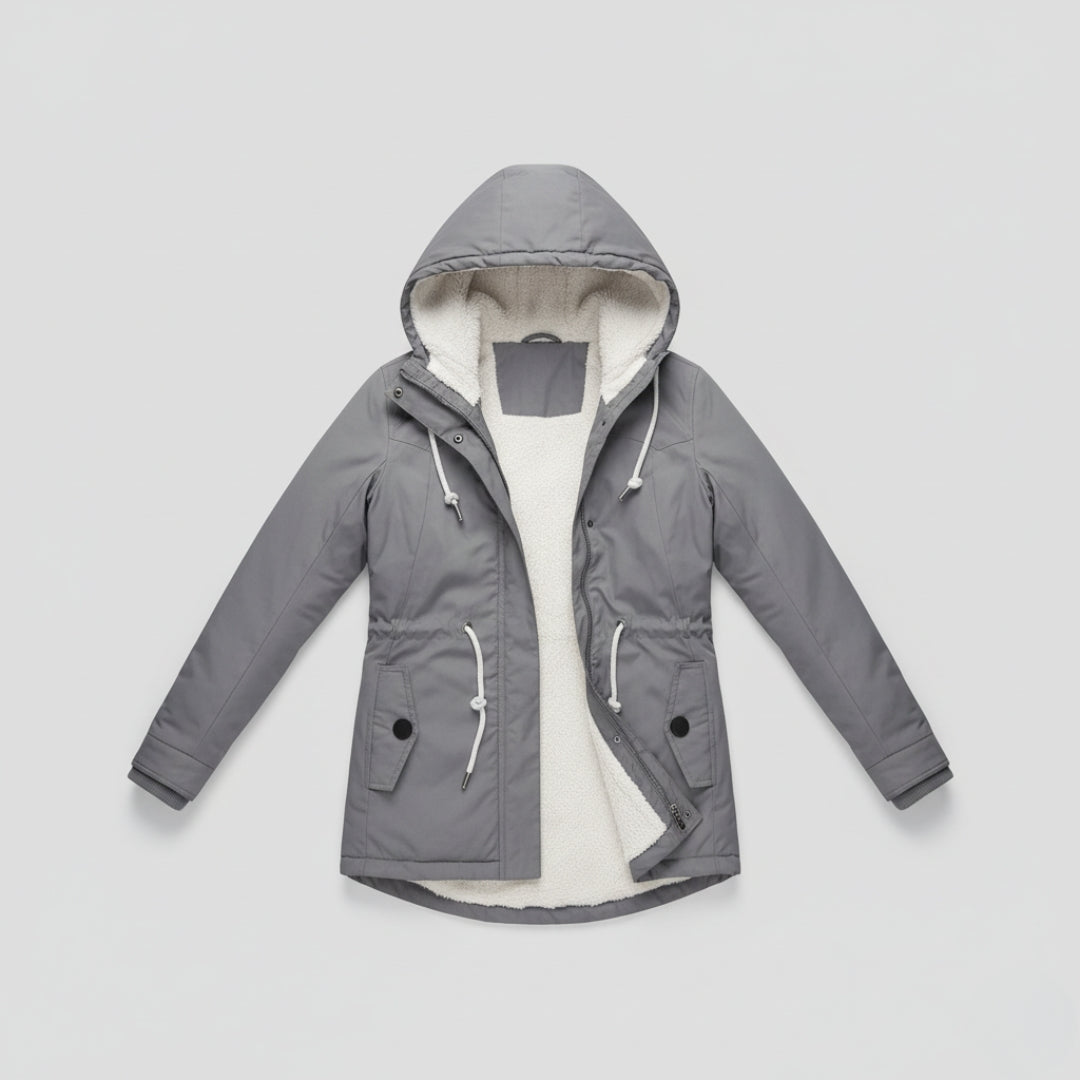 Questa giacca invernale foderata è realizzata con un esterno in tessuto resistente all'acqua e una calda fodera interna in pile sherpa, perfetta per le giornate fredde. Presenta un cappuccio regolabile con coulisse, una chiusura frontale con cerniera e bottoni a pressione per una protezione extra, e due tasche laterali con patta per gli oggetti essenziali. Il design include anche coulisse regolabili in vita per una vestibilità personalizzabile.