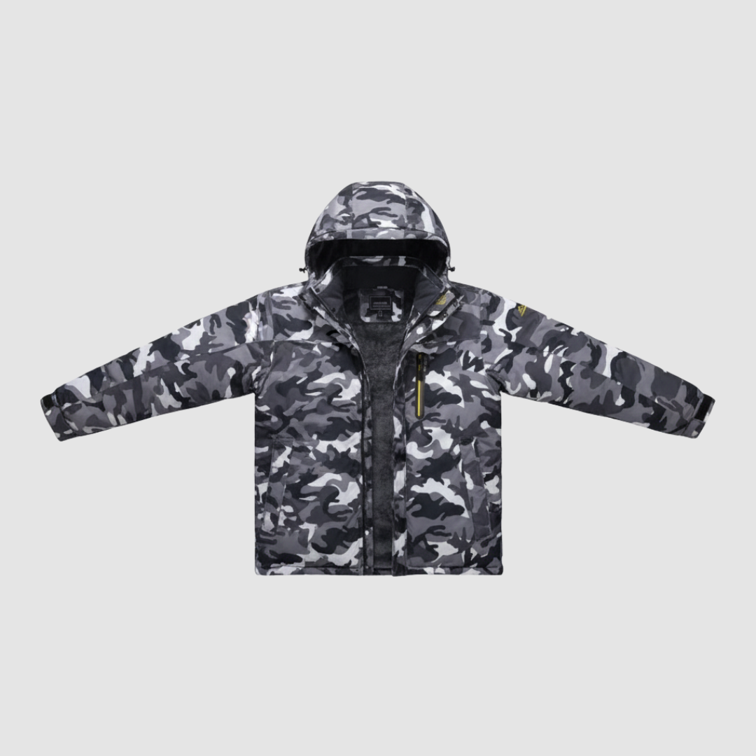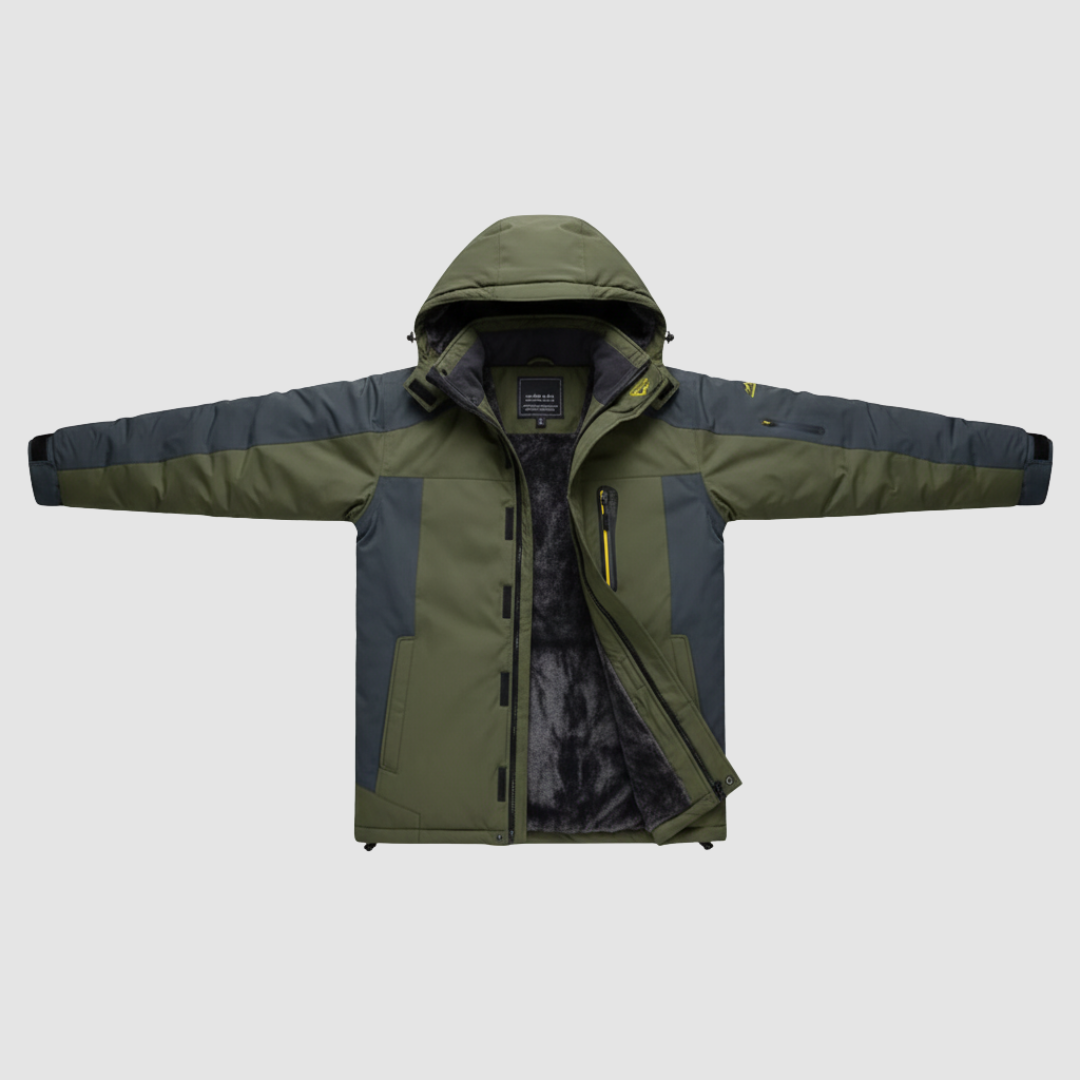 Questa giacca da uomo è progettata per offrire calore e protezione. La giacca presenta un design robusto, ideale per attività all'aperto in condizioni climatiche fredde. Il capo è dotato di un cappuccio fisso e di una chiusura frontale con cerniera e bottoni a pressione per una maggiore protezione dal vento. La vestibilità è comoda, adatta per essere indossata con strati aggiuntivi.